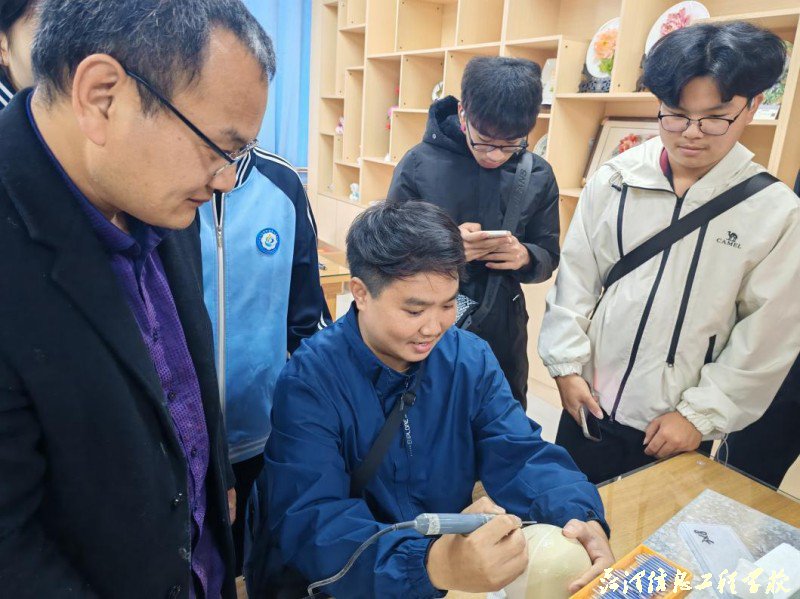 3月24日下午,来自泰国帕府隆县技术学院的研学师生走进山东省菏泽信息工程学校幼儿教育系,在非遗蛋雕传承人陆国强老师的带领下,沉浸式体验中国传统蛋雕技艺,感受中华优秀传统文化的独特魅力。